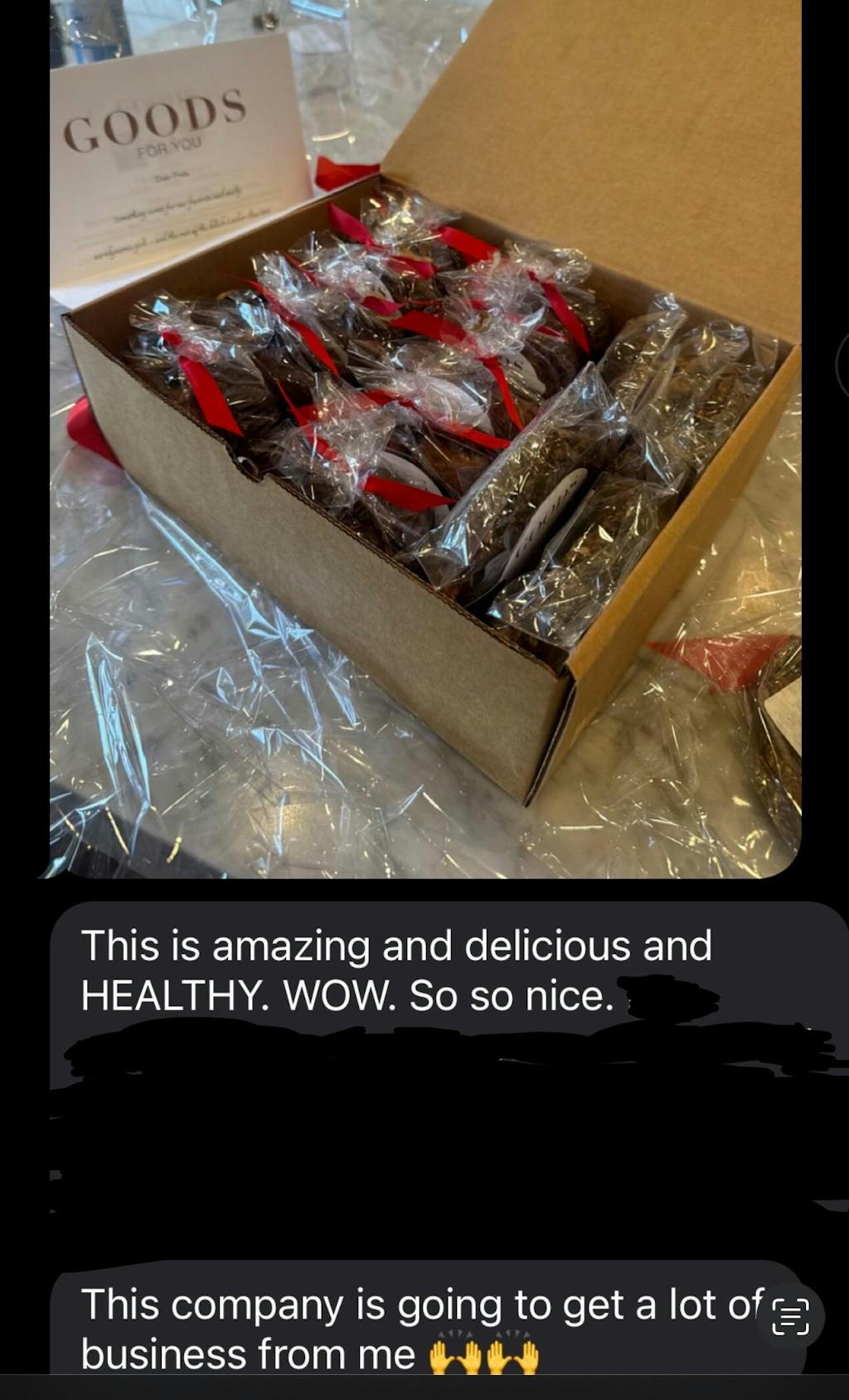 I don’t even eat gluten-free (because most GF stuff is 😝) but this BLEW OUR MIND. Both the cookies and the banana bread are soooo delicious, instant addiction! And when you read the label, it’s pretty amazing - it’s actually good for you while you’re getting your sweet ‘fix’. We liked it so much I just sent 6 packages with cookies and banana bread loaves to friends and clients for various occasions instead of flowers. And they all loved it. Including a photo of a text I just got from one of them. So excited!!!